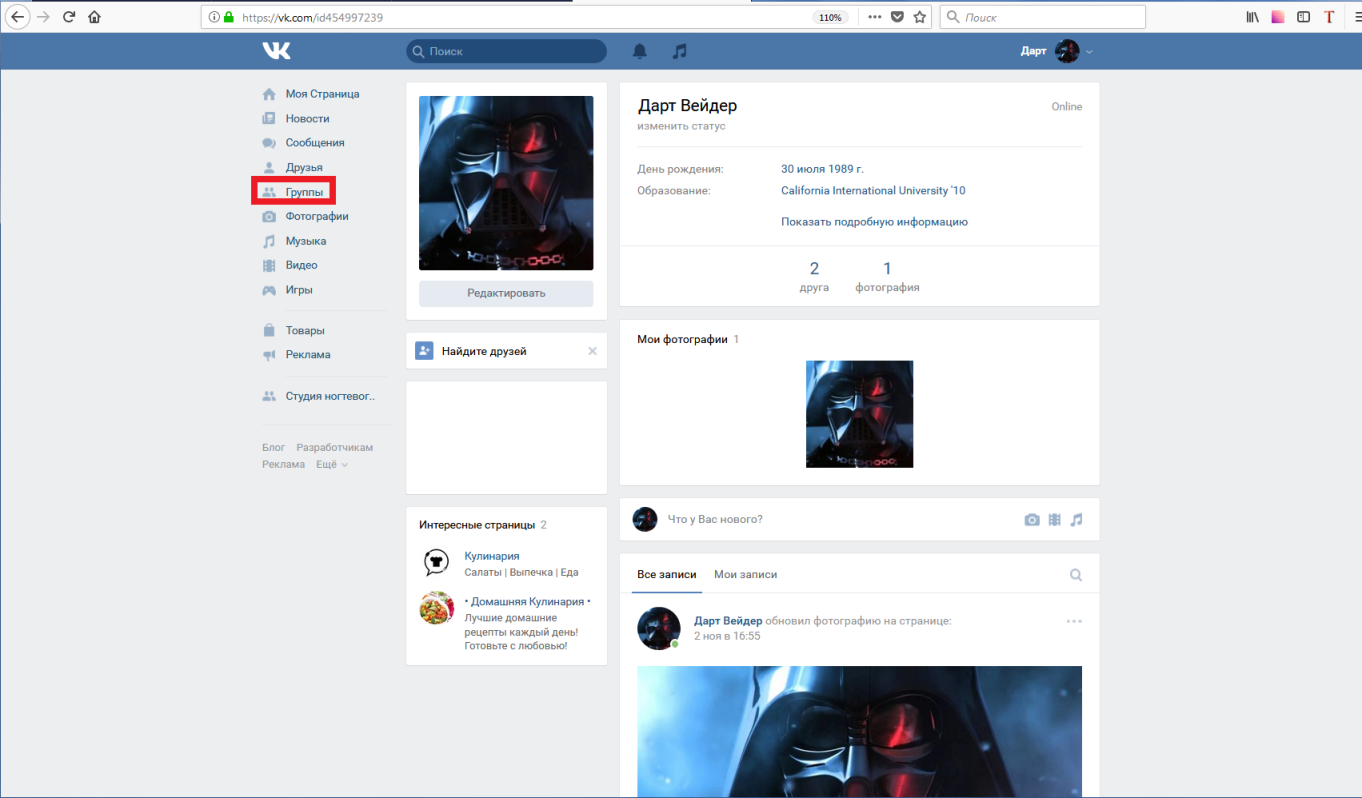 Запустите приложение Вконтакте. Перейдите в раздел «Группы«, и откройте нужную.
