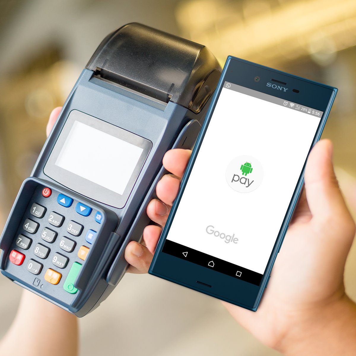 Google Pay. Работает с банковскими картами нового образца от Visa и MasterCard и с картами лояльности — всего 97 поддерживаемых способов оплаты. Число подключаемых карт не ограничено.