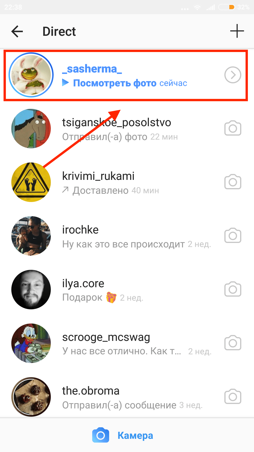 Перейдя на страницу директа, вы видите всех, с кем у вас была переписка в инстаграме.