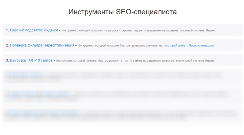 Мой друг и виртуоз продвижения, дирижёр ТОПа и кудесник трафика Александр Арсёнкин имеет на своём сайте ряд инструментов, помогающих в процессе поисковой оптимизации. Вот собственно ссылка на них — http://arsenkin.ru/tools/, а ниже расскажу вкратце об их использовании. Нас интересуют только первые три пункта, так как с остальными, возможно, вы уже знакомы (да уж пора бы).