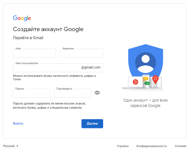 Создание учетной записи Gmail
