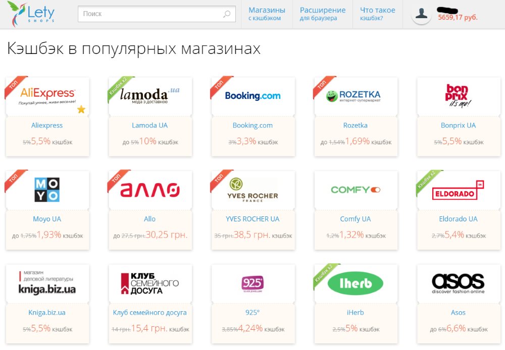 • Cash Back до 40% в более чем 2000 популярных магазинах и сервисах со всего мира, включая универсальный AliExpress;