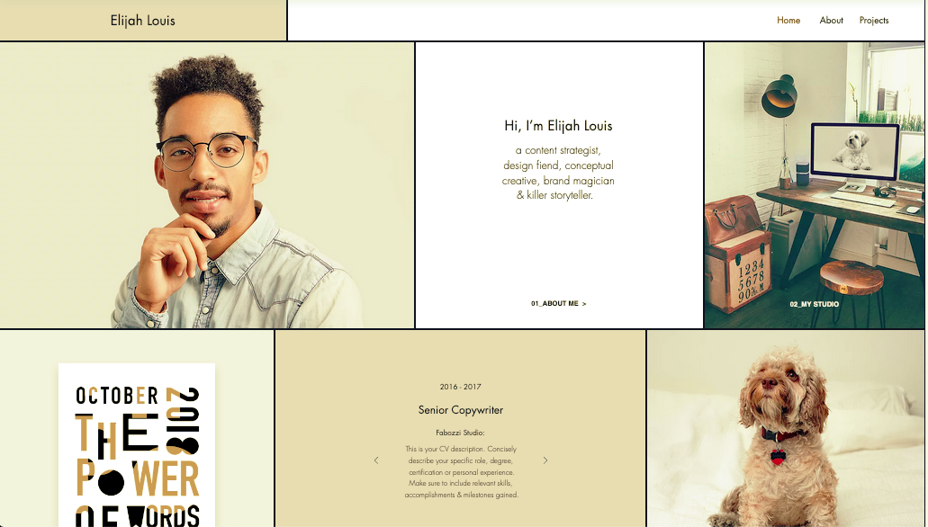 После того как вы выбрали место, в котором будете собирать портфолио, можно переходить к наполнению. В самом начале будет полезно вкратце рассказать о себе. Здесь не нужно вспоминать историю из детства, делиться любимым цветов и рассказывать о том, насколько сильно вы любите писать. Достаточно подготовить емкий текст, который расскажет кто вы такой, что умеете делать, в каких направлениях любите работать и какую пользу можете принести.