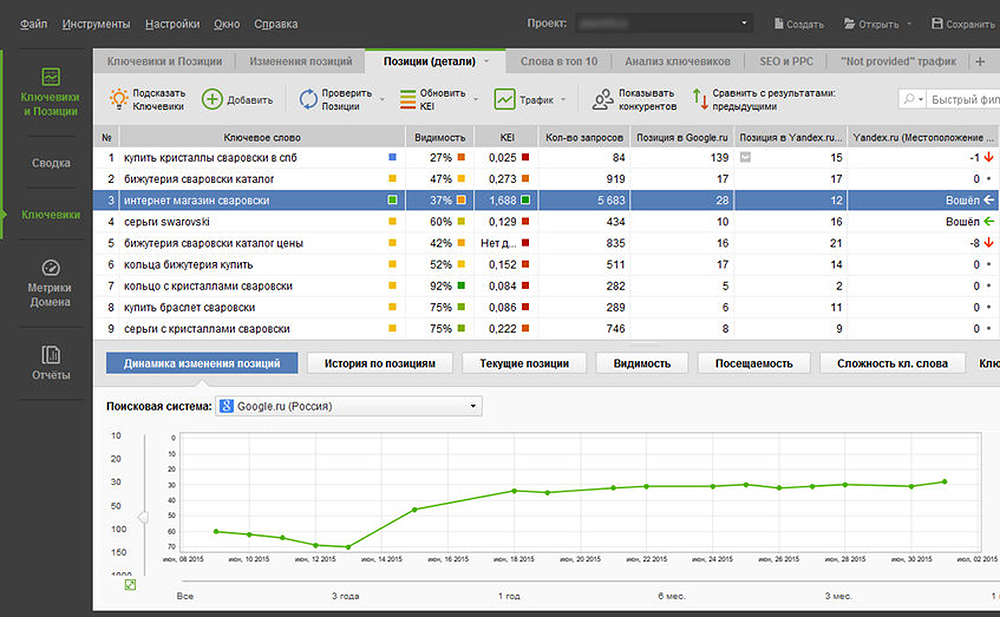 ΠΡΠ΄Π΅Π»ΡΠ½ΡΠΉ ΡΠ΅ΡΠ²ΠΈΡ Π΄Π»Ρ ΠΏΡΠΎΠ²Π΅ΡΠΊΠΈ ΠΏΠΎΠ·ΠΈΡΠΈΠΉ ΡΠ°ΠΉΡΠΎΠ² β line.pr-cy.ru. ΠΠ½ ΡΠ°ΠΊΠΆΠ΅ ΠΏΠΎΠ΄Π΄Π΅ΡΠΆΠΈΠ²Π°Π΅Ρ ΠΎΡΡΠ»Π΅ΠΆΠΈΠ²Π°Π½ΠΈΠ΅ ΠΈΠ·ΠΌΠ΅Π½Π΅Π½ΠΈΡ ΠΏΠΎΠ·ΠΈΡΠΈΠΉ ΠΎΡΠ΄Π΅Π»ΡΠ½ΠΎ ΠΏΠΎ ΠΊΠ°ΠΆΠ΄ΠΎΠΌΡ ΠΊΠ»ΡΡΡ ΠΈ ΠΏΠΎ Π²ΡΠ΅ΠΌ ΠΊΠ»ΡΡΠ°ΠΌ Π² ΡΡΠ΅Π΄Π½Π΅ΠΌ. ΠΡΠΎΠΌΠ΅ ΡΠΎΠ³ΠΎ, Π² Π½Π΅ΠΌ Π΅ΡΡΡ ΡΡΠ°Π²Π½Π΅Π½ΠΈΠ΅ ΠΏΠΎΠ·ΠΈΡΠΈΠΉ Ρ ΠΊΠΎΠ½ΠΊΡΡΠ΅Π½ΡΠ°ΠΌΠΈ ΠΈ ΠΊΠ»Π°ΡΡΠ΅ΡΠΈΠ·Π°ΡΠΈΡ ΡΠ΅ΠΌΠ°Π½ΡΠΈΠΊΠΈ.