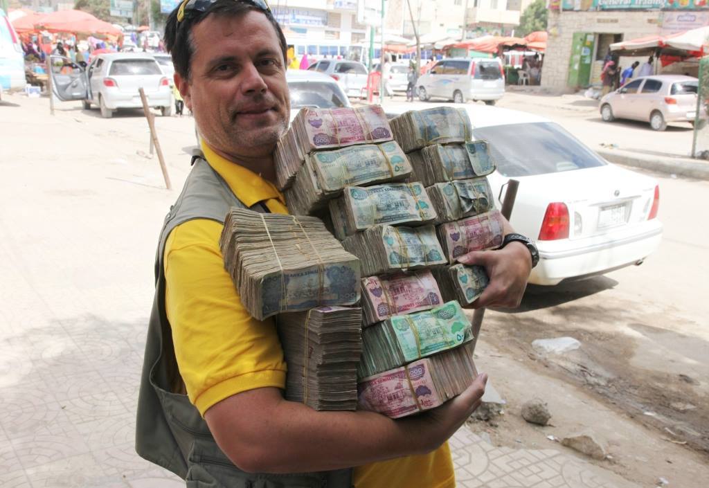 3 место. Сомалийский шиллинг. Как черт из табакерки. В гугле если пошарить. вылезет курс 570-580, но вот на сайте центробанка курсы совсем другие, причем, похоже, задним числом. А именно — 24499 за доллар. Самая крупная банкнота там всего 1000