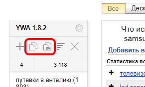 По этой схеме прогоняем через Wordstat все заранее подготовленные «базовые» ключи, собираем всё необходимое, а затем путем нажатия на одну из этих двух кнопок копируем собранный ранее список в буфер обмена. Обратите внимание, что кнопка с двумя листиками копирует список без частот, а с двумя листиками и числом 42 – с частотами.