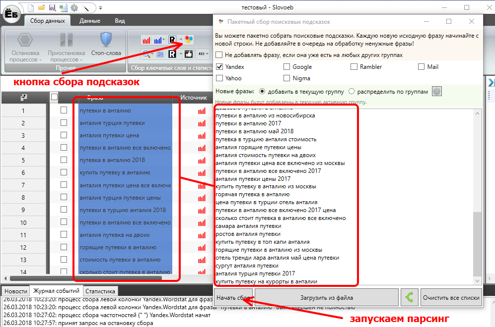 Подбор семантического ядра парсером Яндекс. Вордстат