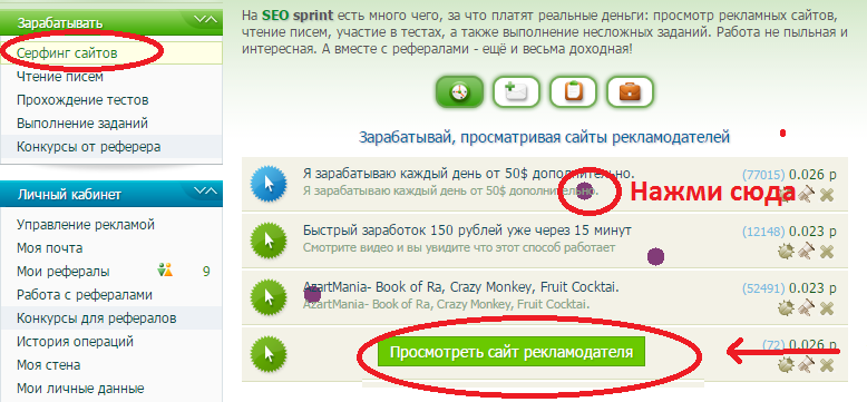 А теперь мы расскажем о сайтах, на которых можно заняться сёрфингом сайтов за деньги.